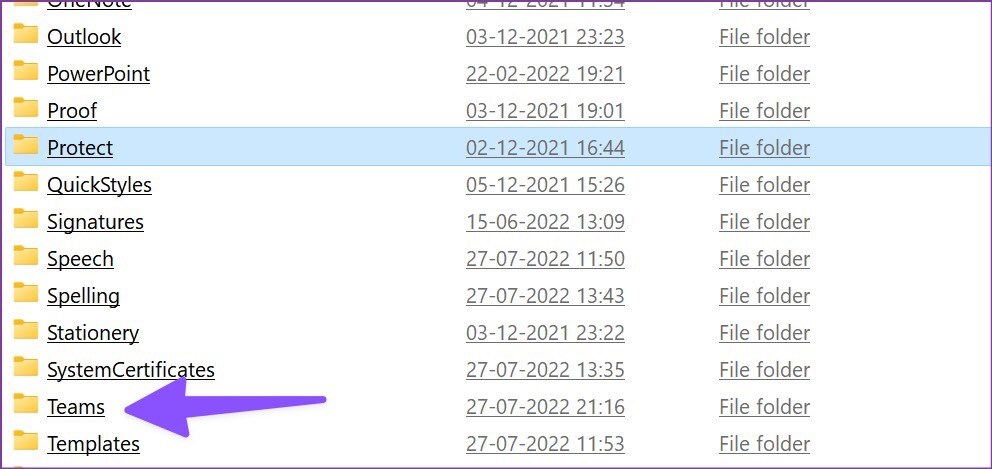 4단계: 다음 메뉴에서 팀즈 폴더를 엽니다.